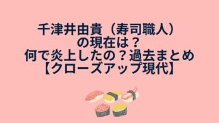 こんにちは!今回は、クローズアップ現代 SUSHI“新時代”〜勃発!世界の寿司ネタ争奪戦〜に出演する千津井由貴(ちづい ゆき)さんが気になったので調べていきます!千津井由貴(ちづい ゆき)さんといえば、日本の女性寿司職人ですね。寿司業界での...