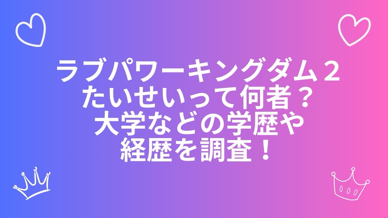 今回は、ラブパワーキングダム2に出演しているたいせいさんが気になったので調べていきます!