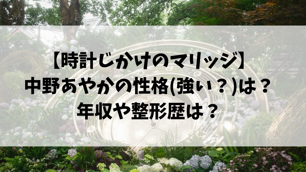 今回は、時計じかけのマリッジに出演する中野綾香(あやか)さんが気になったので調べていきます!